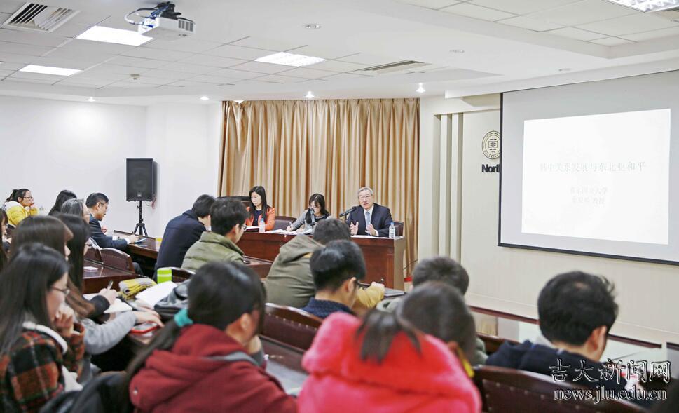 11月5日,韩国前外交通商部部长、现任首尔国立大学国际研究生院教授金星焕一行5人来吉大访问。
