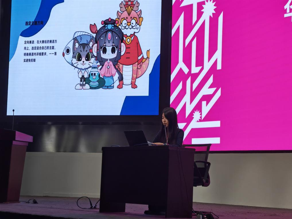 活动特别邀请了往届获奖师生代表分享参赛经验。吉林大学艺术学院设计系万卉老师以其指导的获奖作品为例,分享了如何在设计中巧妙融合传统文化与现代理念的创作心得。来自吉林大学艺术学院2023级的获奖学生文畅同学则从参赛者角度,讲述了从创意构思到作品完成的完整过程,强调了团队协作和不断优化的重要性。他们的真诚分享为即将参赛的学子提供了宝贵的参考。