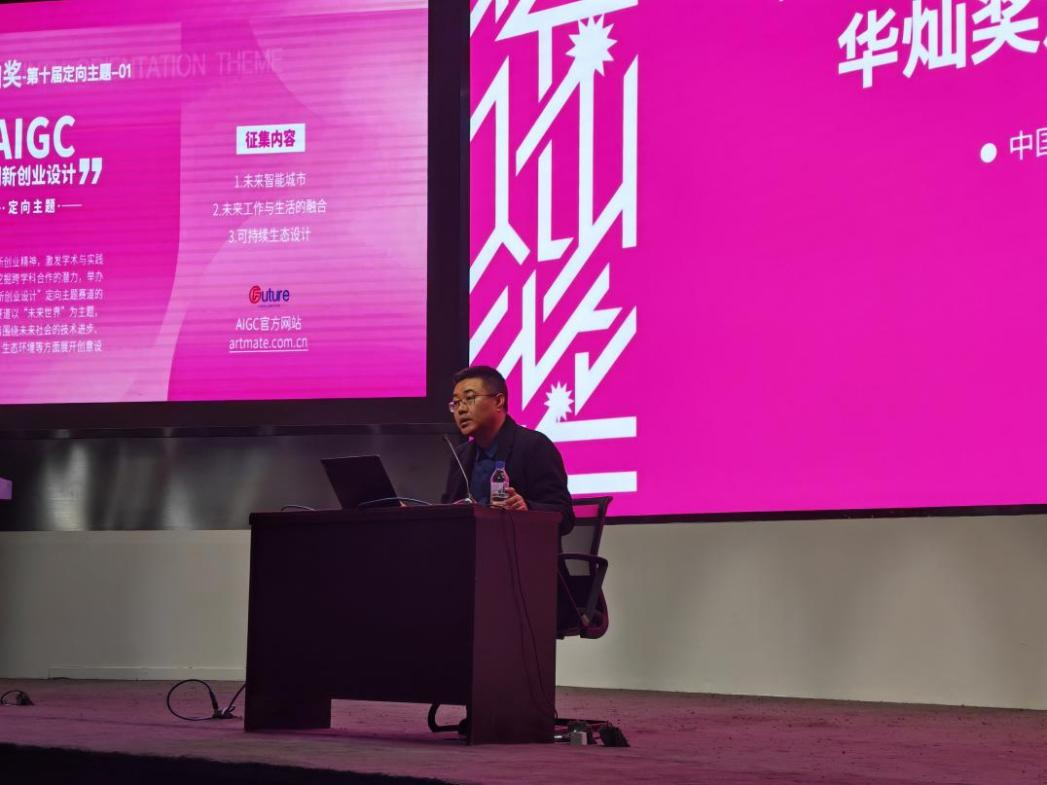 在竞赛规则解读环节,华灿奖组委会秘书长、吉林艺术学院设计学院副院长苏大伟教授,为现场师生系统阐释了参赛细则与赛事亮点。他围绕各定向主题展开细致解读,就作品提交规范、评审标准、赛程安排等关键环节作了详细说明,特别强调作品需突出原创性与创新性,并鼓励参赛者组建跨专业、跨院校的多元团队,以多元视角激发设计活力。