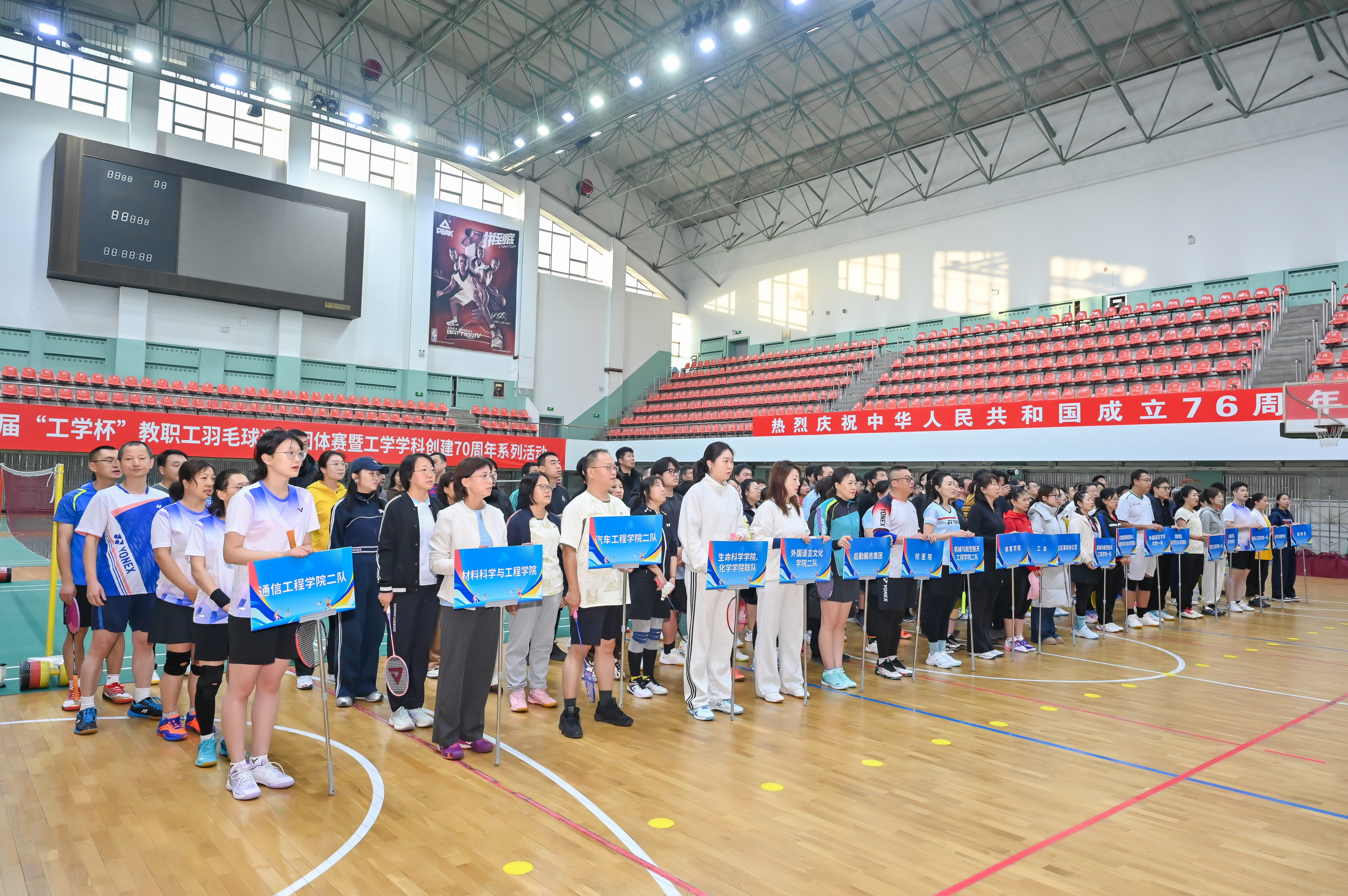 【文字/陈慧羲 图片/东区事务办公室】秋韵未褪,初冬已至;南岭校园,活力飞扬。为倡导健康向上的校园文化,增强教职工身体素质与团队凝聚力,促进各单位交流协作,11月22日,由东区事务办公室主办,工会、体育学院、机械与航空航天工程学院协办的吉林大学第四届“工学杯”教职工羽毛球混合团体赛在南岭校区体育馆拉开帷幕。
