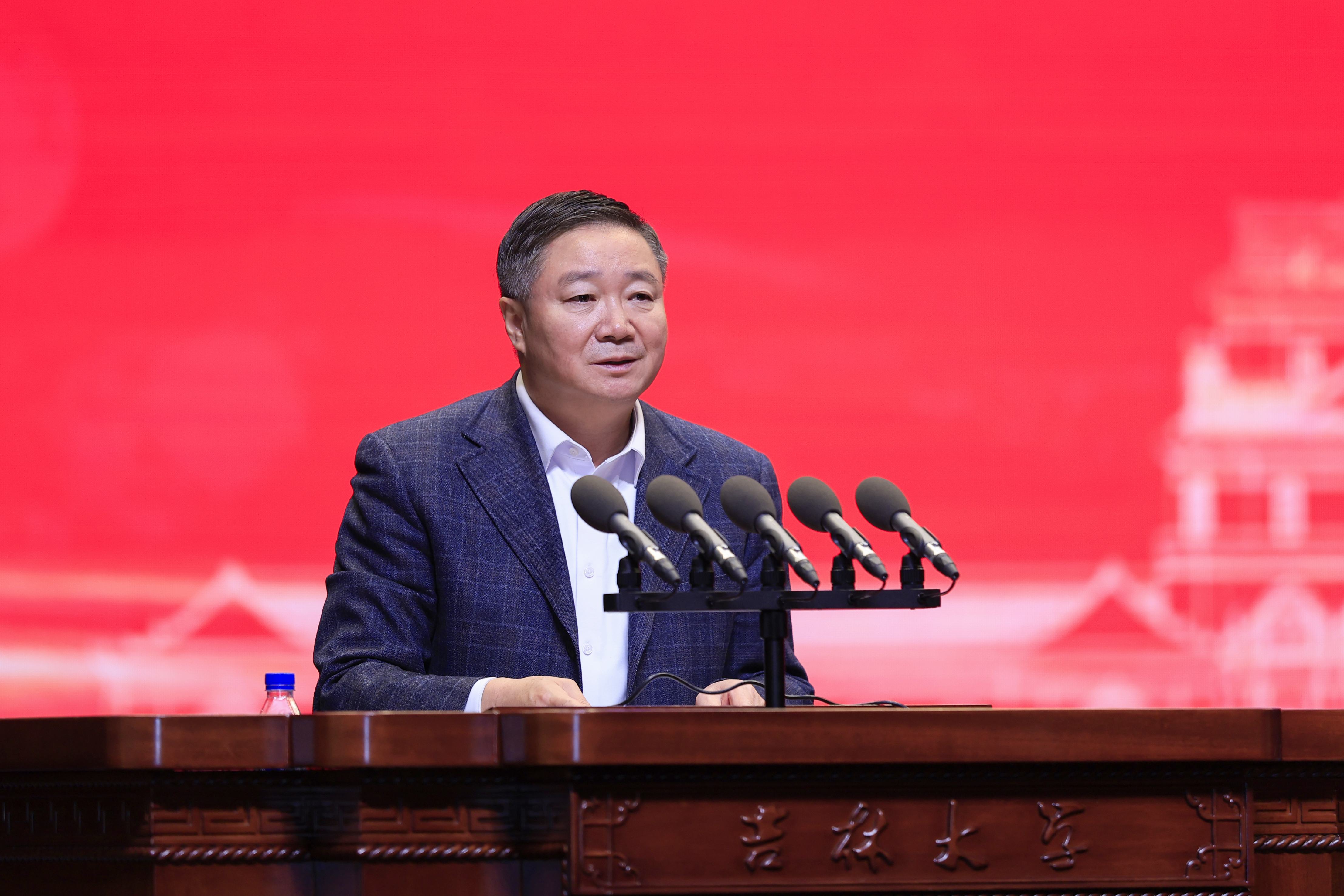 赵国庆在讲话中代表田辉书记和张希校长,向尤红长期以来对学校医学事业发展的鼎力支持和对吉大医学学子的深切关怀表示衷心感谢。他表示,吉大医学的红色根脉始于1939年创建的晋察冀军区卫生学校,伟大的国际主义战士诺尔曼・白求恩同志,曾亲自参与学校的创建与早期教学工作。近十年来,在吉林大学本科招生中,医学专业始终是高分考生的热门选择。选择学医,就是选择了“终身坚守与精进”、选择了“卓越平台与荣光”、选择了“精神传承与担当”。选择白求恩,就是选择了“毫不利己、专门利人”的奉献精神,选择了“对技术精益求精”的职业追求。这是我们吉大医学人的历史使命与时代责任。连续十余年,学校组织开展“重走白求恩路”主题实践活动,让红色基因代代相传。在每一次重大考验面前,我校医务人员都冲锋在前,特别是抗击新冠肺炎疫情时,我校医务人员更是白衣执甲,成为奔赴一线最早、收治最重、疗效显著、撤离最晚、参与人数最多的医学院校队伍之一。希望同学们能从学校的建校初心与精神传承中汲取力量,以白求恩精神为指引,将医学梦想融入健康中国建设的伟大征程,做新时代卫生健康事业的建设者、奋进者、开拓者,书写吉林大学白求恩医学部新的辉煌。