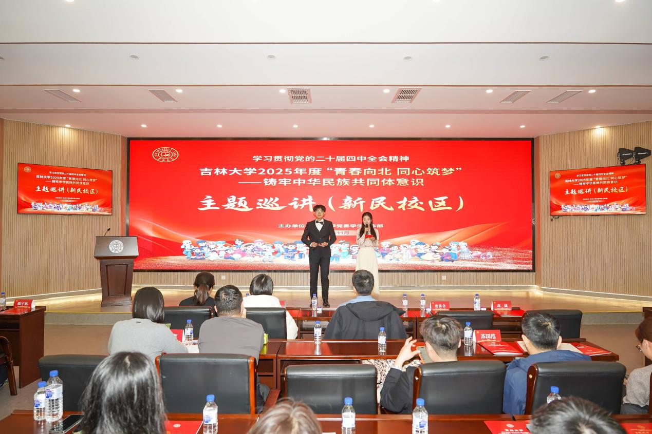 【供稿:党委学生工作部】为深入贯彻落实习近平总书记关于加强和改进民族工作的重要思想,持续推进铸牢中华民族共同体意识教育走深走实,党委学生工作部,党委统战部、党委宣传部、吉林大学东北民族研究中心于2025年11月27日至12月9日先后在新民校区、和平校区、南岭校区、朝阳校区成功举办了2025年度“青春向北 同心筑梦”--铸牢中华民族共同体意识巡讲活动。