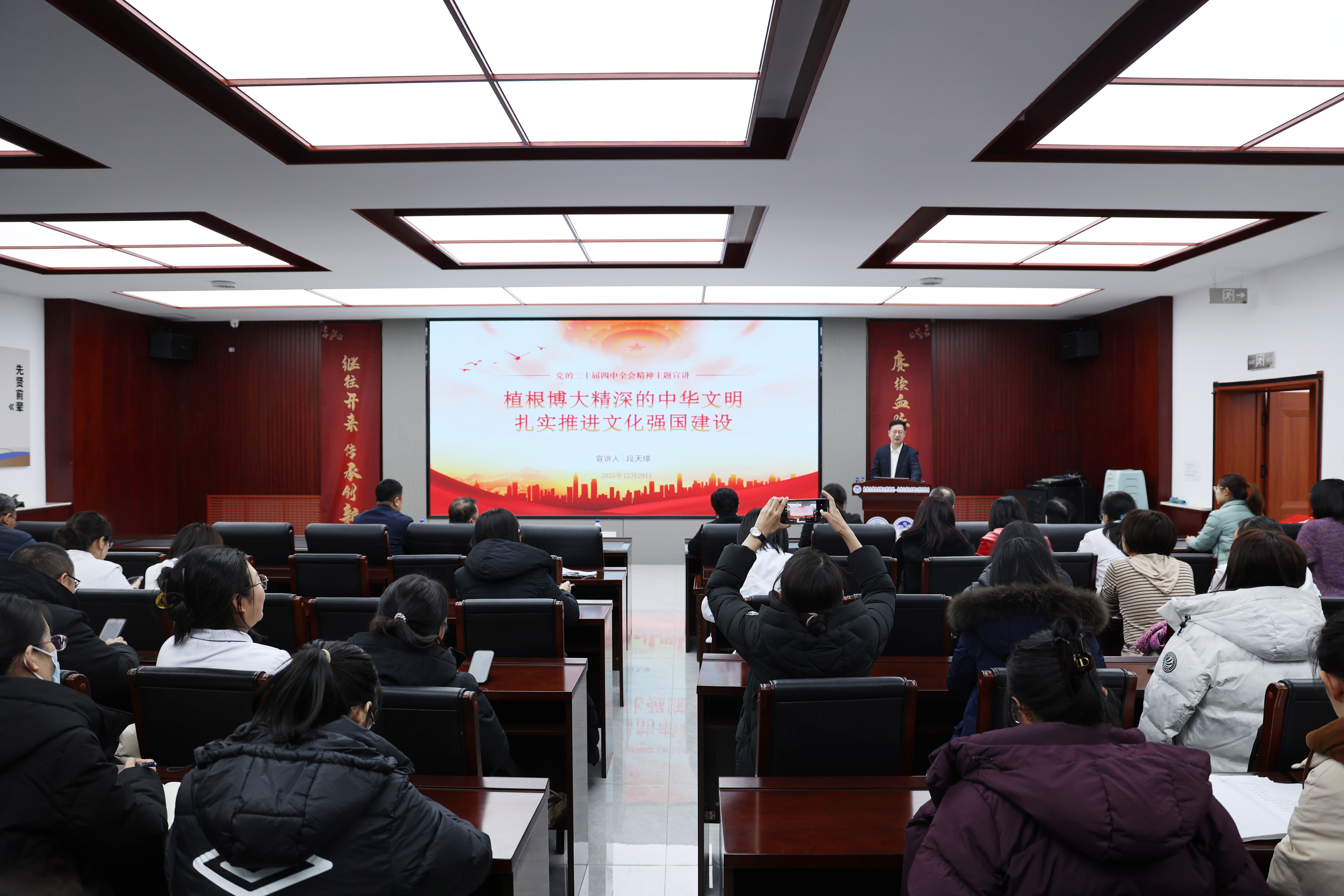 【供稿:白求恩口腔医学院】为深入学习贯彻党的二十届四中全会精神,切实把全院党员干部的思想和行动统一到全会决策部署上来,2025年12月29日下午,我院举办学习贯彻党的二十届四中全会精神宣讲报告会,邀请吉林大学学习贯彻党的二十届四中全会精神专家宣讲团成员、吉林大学考古学院院长兼考古与艺术博物馆馆长段天璟教授作专题宣讲。报告会由院党委书记胡敏主持。