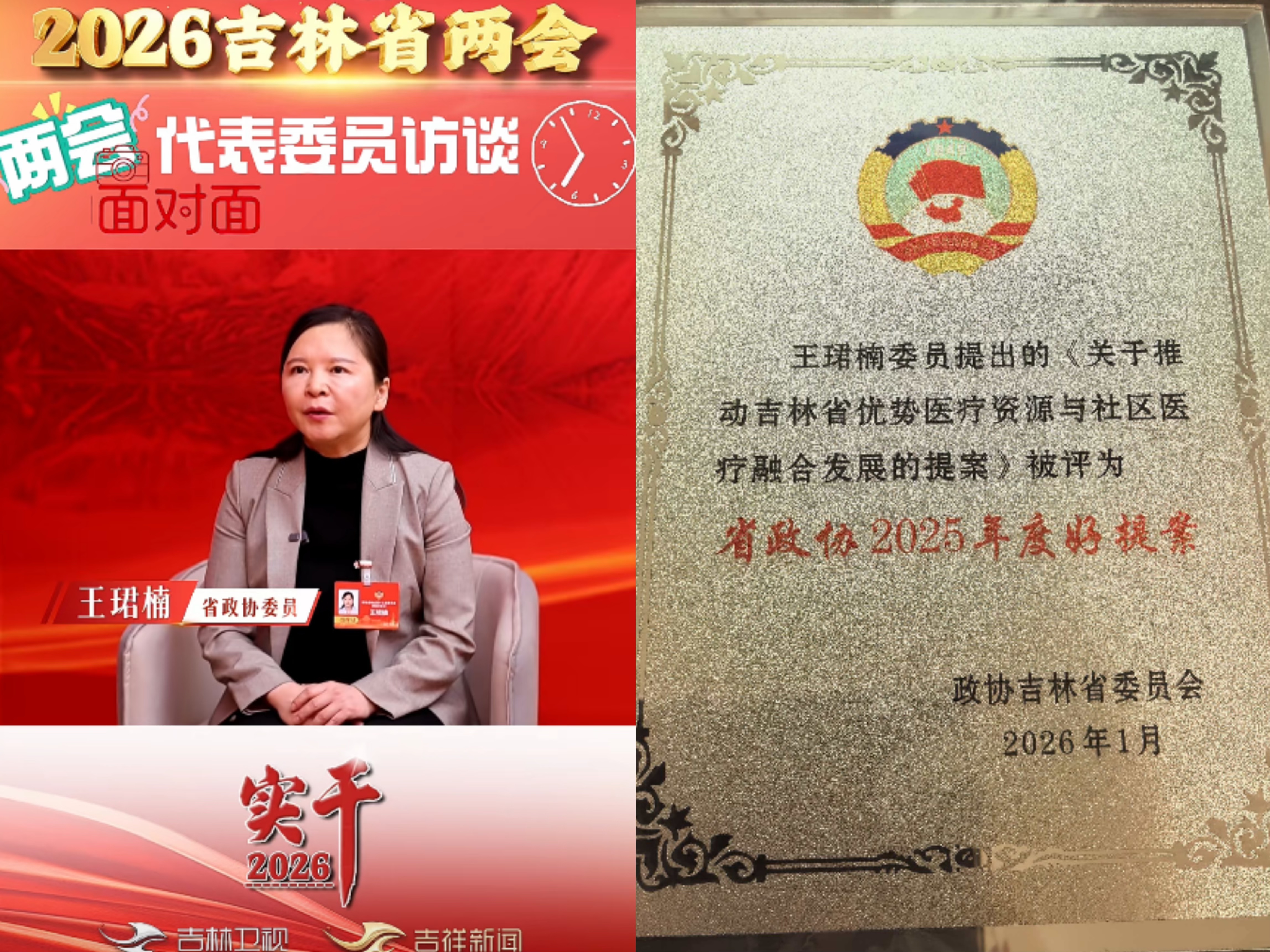 省政协委员、民盟省委常委、民盟市委委员、吉林大学第二医院心内科副主任王珺楠教授接受吉林卫视采访,她关注基层群众呼声,聚焦提高基层诊疗能力,提出要加强三甲医院对社区的帮扶、加强对社区人才的引进和培养、充分发挥社区医疗优势开展多元化服务等务实举措。她提交的《关于推进吉林省优势医疗资源与社区医疗融合发展的提案》获得吉林省政协2025年度好提案。
