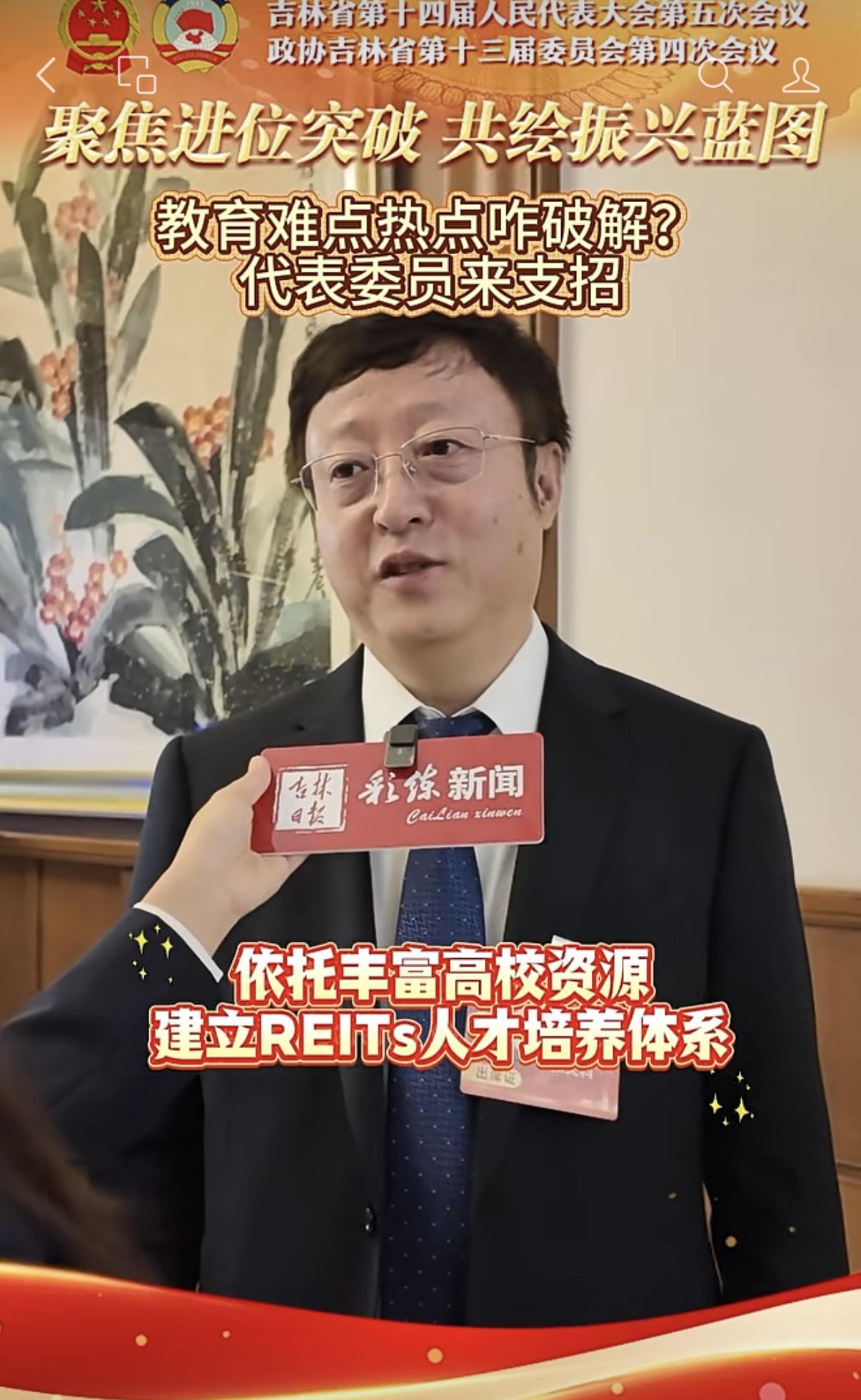 省政协委员、民盟市委委员、校民盟副主委、吉林大学超分子结构与材料全国重点实验室主任张文科教授接受《吉林日报》记者采访,围绕百姓最关心的教育话题,他提出要依托我省丰富高校资源,加快构建本土化、系统化的REITs人才培养体系,通过出台专项鼓励政策,引导高校参与人才培养,推动高校完善REITs课程与师资体系,进一步搭建实践平台,提升人才实战能力。