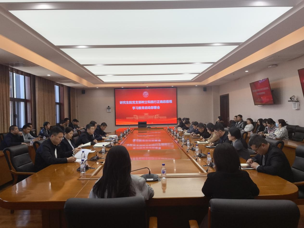 【研究生院】3月6日,研究生院党支部召开树立和践行正确政绩观学习教育启动部署会,深入学习习近平总书记关于树立和践行正确政绩观的重要论述,认真贯彻落实中央党的建设工作领导小组会议精神,对研究生院开展树立和践行正确政绩观学习教育进行动员部署。会议由党支部副书记、研工部部长赵玥主持,研究生院副院长王飞领学学习材料,研究生院院长杨博作动员讲话。党支部全体党员参加会议。
