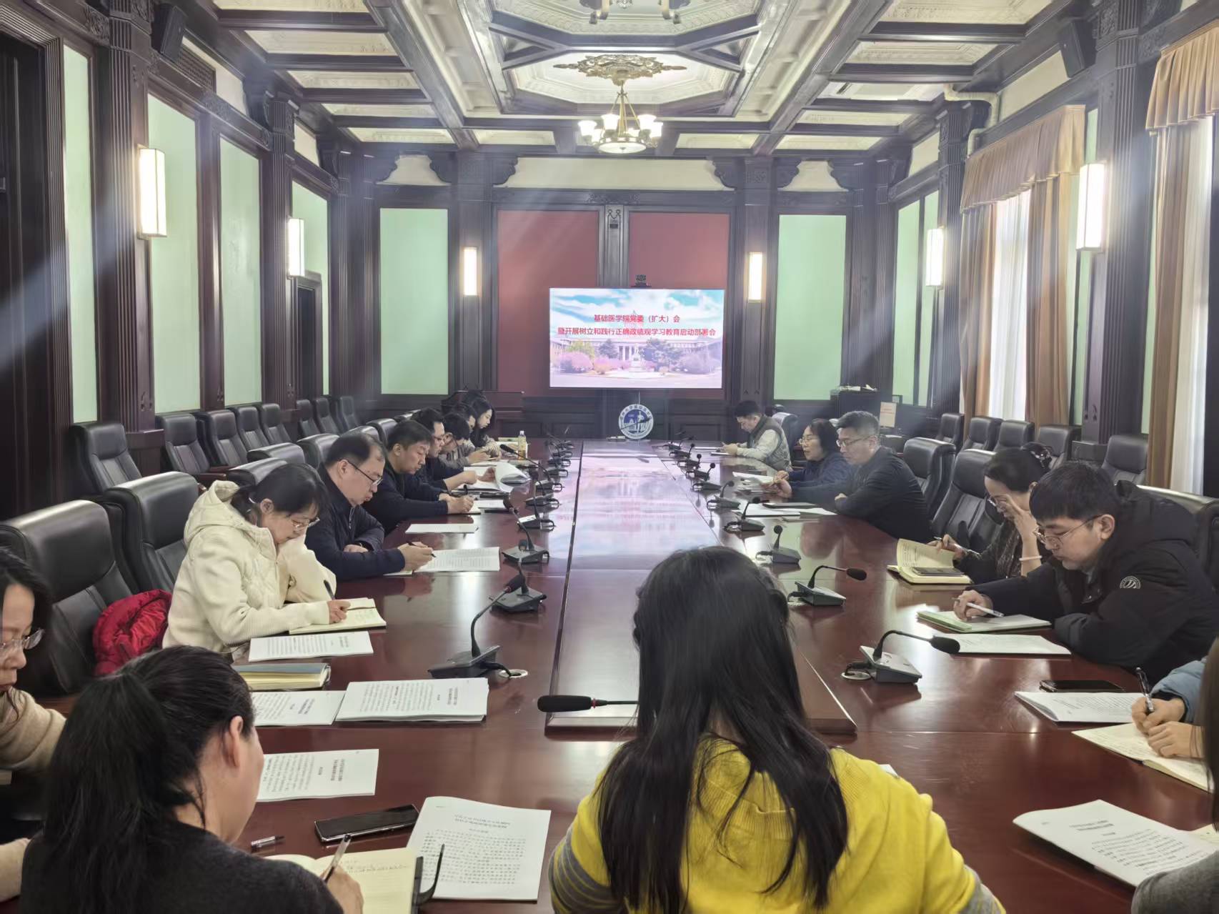 【基础医学院】3月5日,基础医学院召开党委(扩大)会暨树立和践行正确政绩观学习教育启动部署会,深入学习习近平总书记关于树立和践行正确政绩观的重要论述,全面贯彻落实学校学习教育《实施方案》要求及启动部署会议精神。学院领导班子成员、党委委员、纪委委员、各教工党支部书记参加会议,学院党委书记王晓荣主持会议。