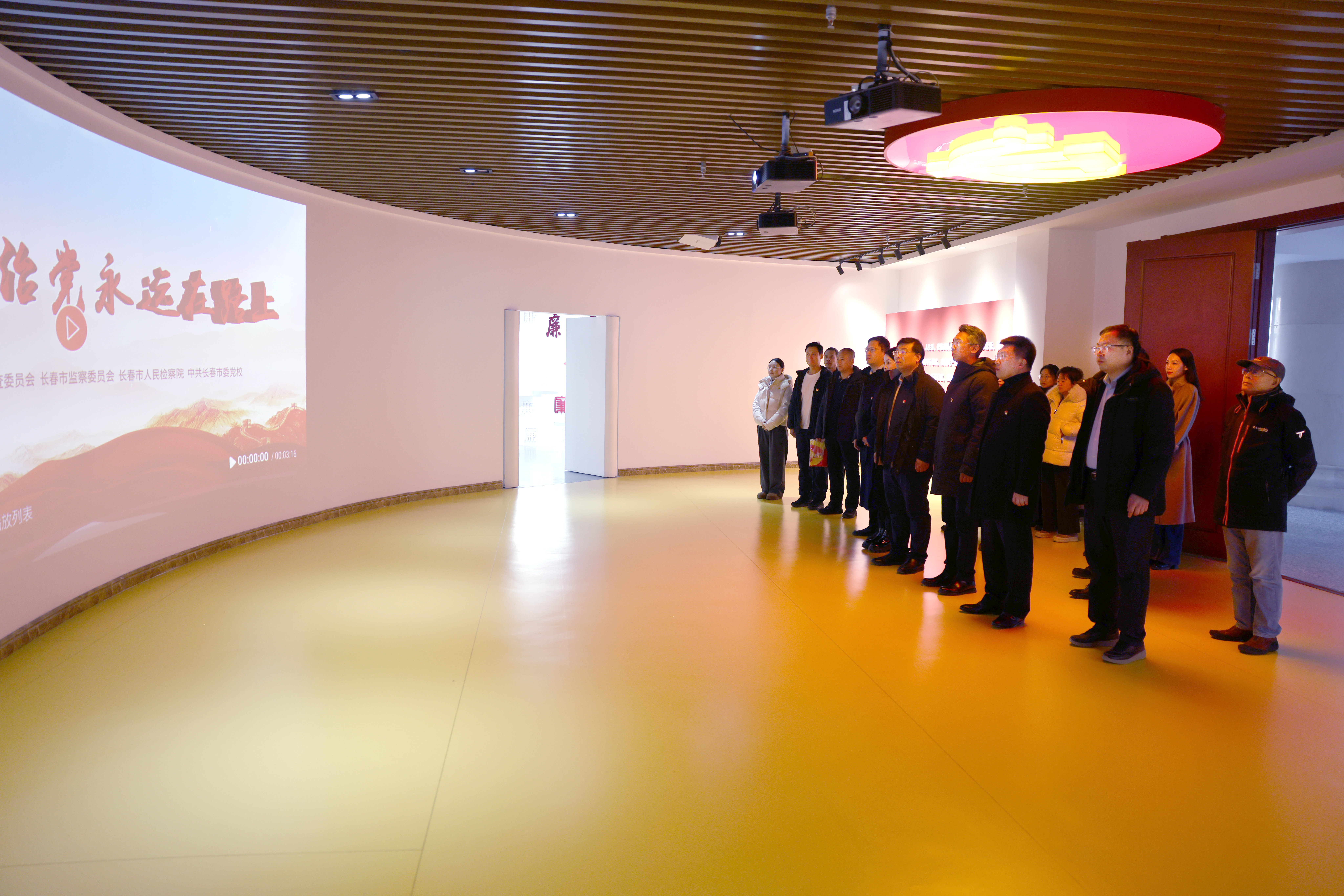 会后,全体党员干部前往长春市人民检察院警示教育基地接受沉浸式警示教育。通过现场参观、案例学习,直观感受违纪违法典型案例带来的深刻警示,进一步强化纪律意识、规矩意识和底线思维,深刻认识必须始终坚守初心使命,严守纪律规矩,做到知敬畏、存戒惧、守底线。参观结束后,全体党员重温入党誓词。大家一致表示,将以此次学习教育和警示教育为契机,进一步校准思想坐标、锤炼过硬作风,坚持以师生为中心,脚踏实地做宣传,以实实在在的工作成效践行正确政绩观,为学校高质量发展和“双一流”建设营造良好舆论氛围、提供坚强思想保证。