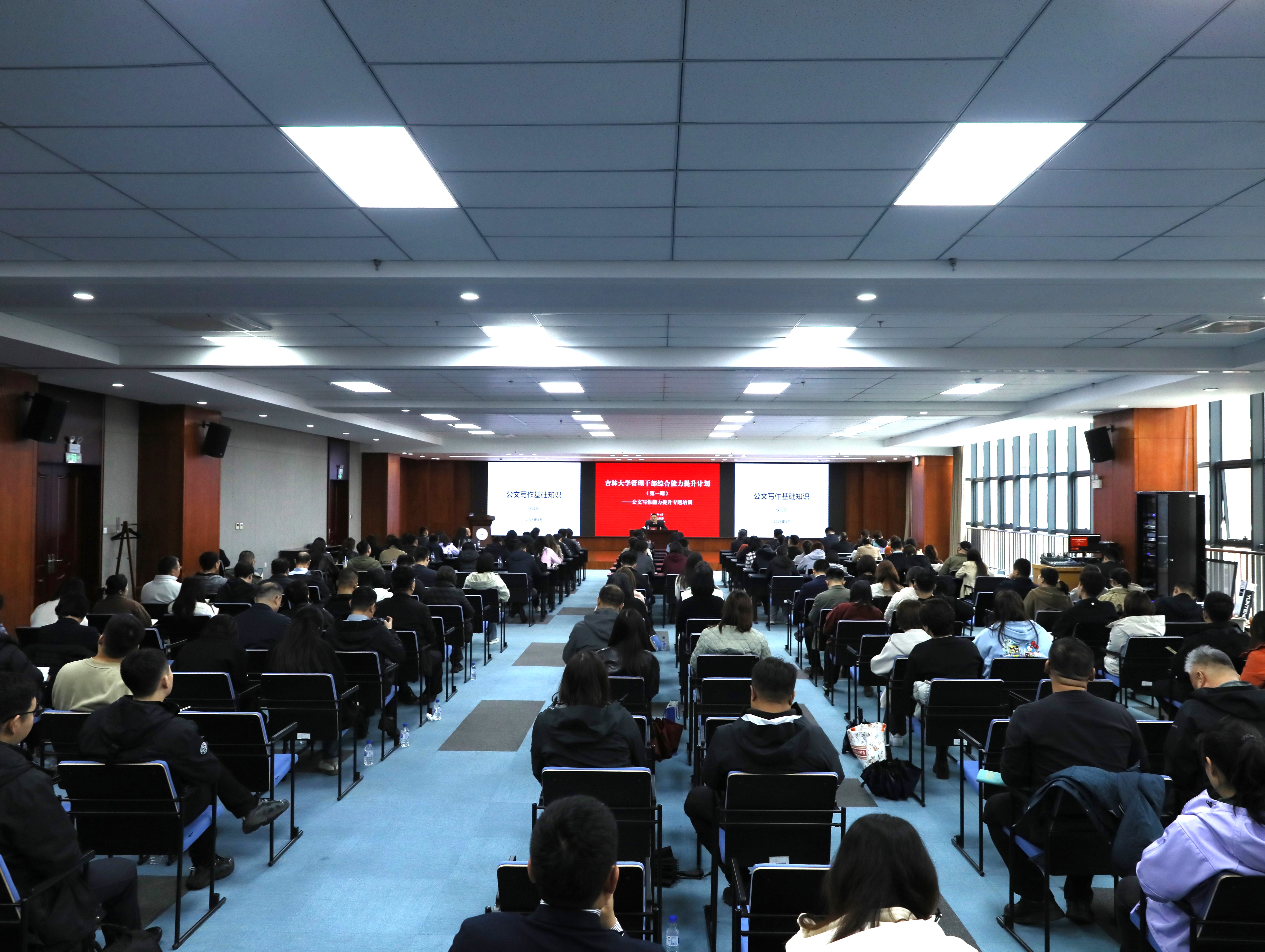 【党委组织部】为深入学习贯彻习近平新时代中国特色社会主义思想,全面贯彻党的二十大和二十届历次全会精神,按照《吉林大学干部教育培训规划(2023—2027年)》和年度干部教育培训安排,党委组织部于近期开展“管理干部综合能力提升计划(第一期)——公文写作能力提升专题培训”。培训由吉林东北亚出版传媒集团党委专职副书记侯兆轶授课,机关党委书记兼党委组织部副部长张蓼红主持,学校200余名干部参加培训。