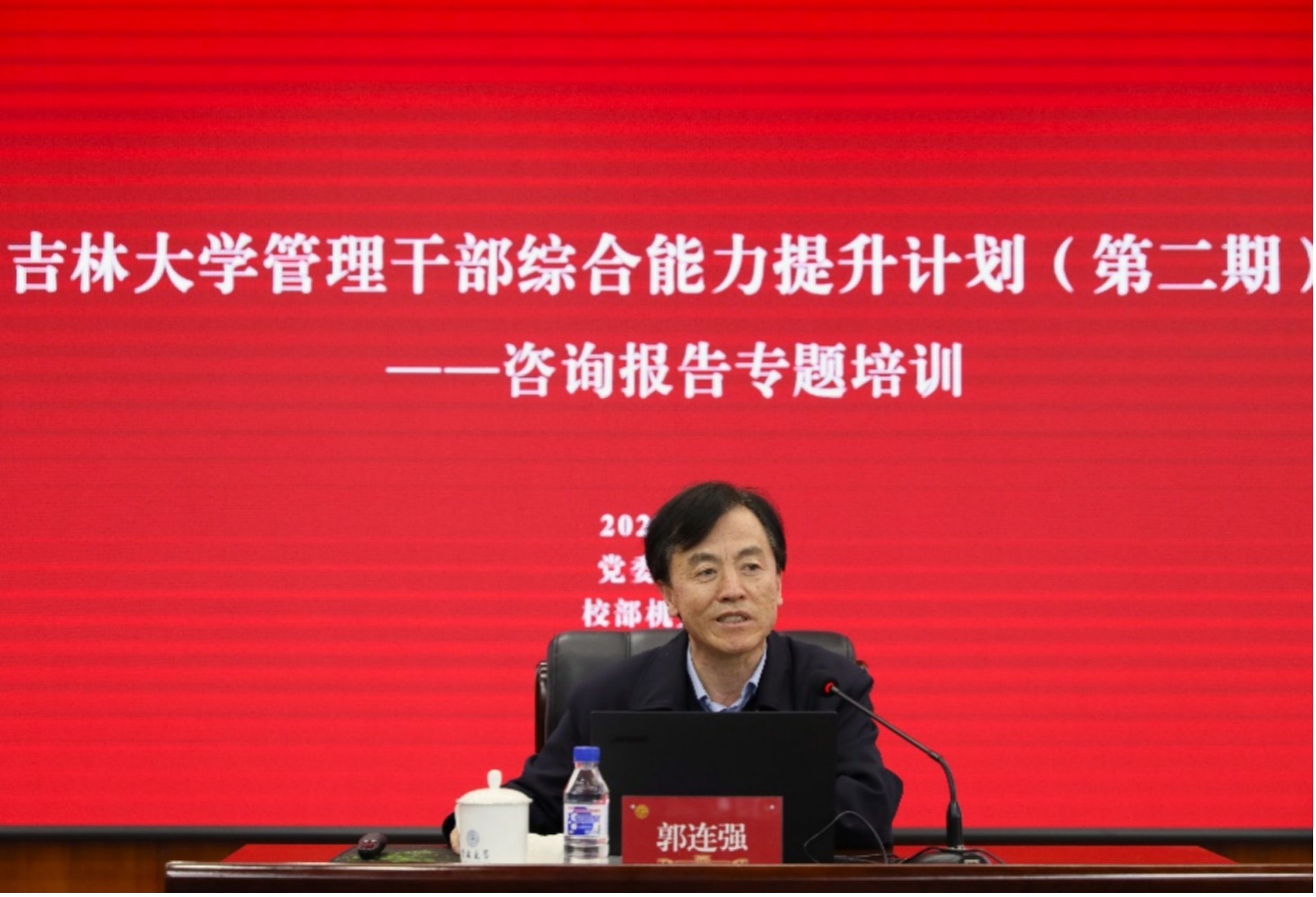 【党委组织部】为深入学习贯彻习近平新时代中国特色社会主义思想,全面贯彻党的二十大和二十届历次全会精神,贯彻落实新时代党的组织路线,切实加强学校干部队伍建设,4月17日下午,党委组织部组织开展了“管理干部综合能力提升计划(第二期)——咨询报告专题培训”。培训邀请吉林省社科院副院长、二级研究员、博士生导师郭连强教授授课,机关党委书记兼党委组织部副部长张蓼红同志主持,学校100余名干部参加培训。