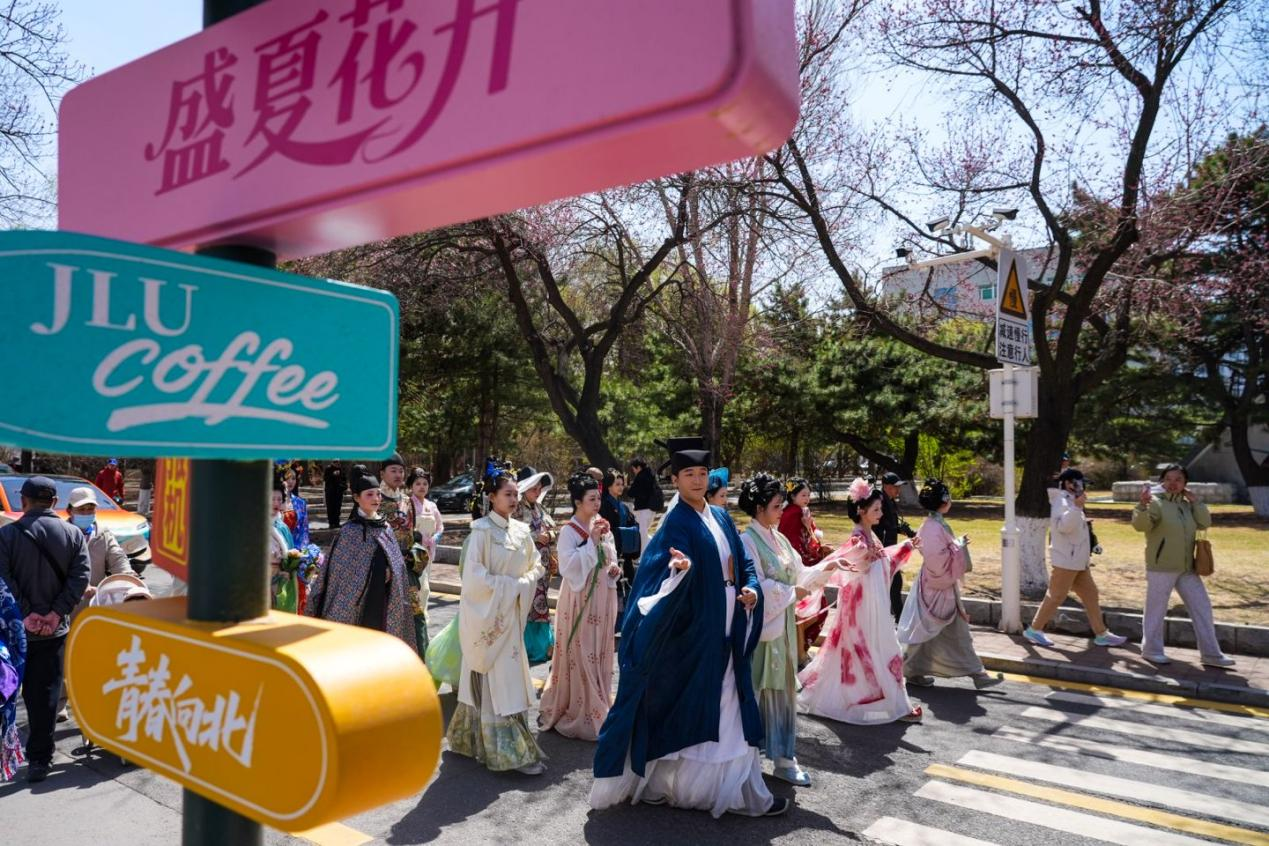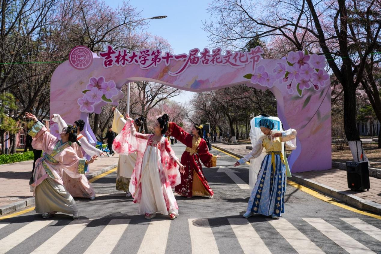 【东区事务办公室】四月杏花如雪,舞袖流芳。4月20日,2026年“中国华服周·吉韵东方”活动走进吉林大学南岭校区,为正在举行的第十一届杏花文化节赏花周增添国风色彩。这是继“四时俱好 繁花长春”长春春日文旅漫游汇之后,赏花周期间第二个走进学校的文化活动。