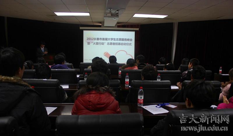 11月18日,2012长春市首届大学生志愿服务峰会暨“火苗行动”志愿者招募启动仪式在吉大举行。活动意在分享长春各高校志愿服务经验,推动长春市首次跨校区大型志愿服务——“火苗行动”的开展。来自长春理工大学、长春建筑学院、吉林财经大学、东北师范大学、吉林大学各校区共45个志愿类社团的相关负责人到会交流。