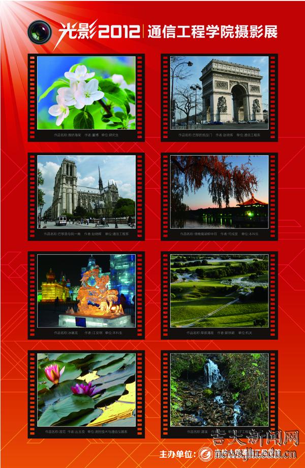 10月19日开始,通信工程学院“魅力世界 美好生活”主题摄影展在吉林大学南湖校区开展。本次摄影展旨在迎接党的十八大胜利召开,不断丰富学院师生员工的业余文化生活,展现学院师生对校园之美、生活之美、自然之美的追求和感悟,进一步激发广大师生勤奋学习、努力工作、拥抱生活的热情与活力。