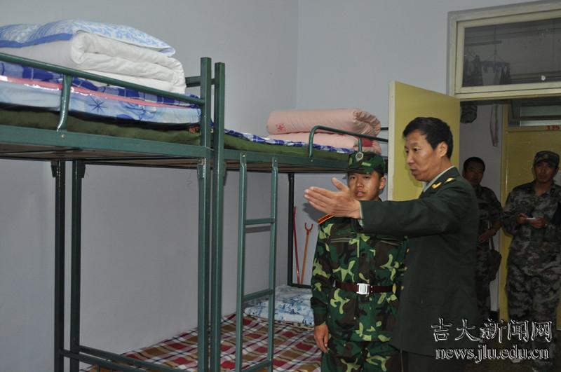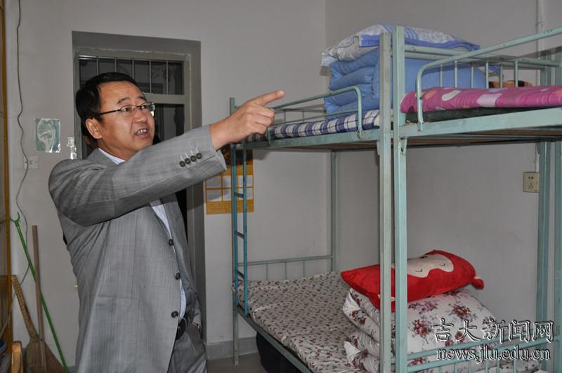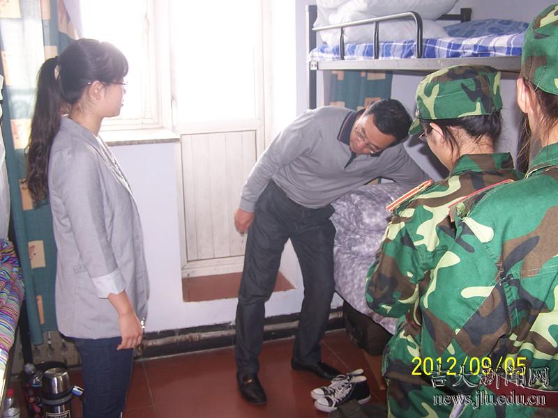 学生处副处长孙继平检查学生寝室内务卫生