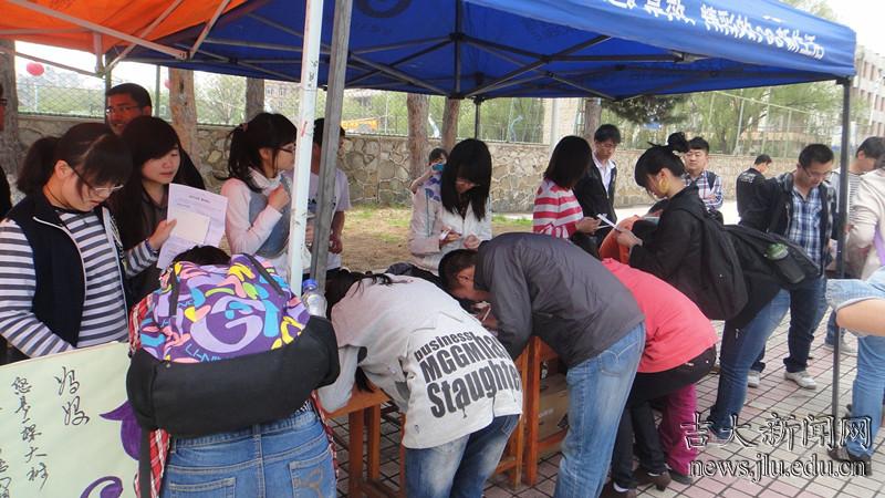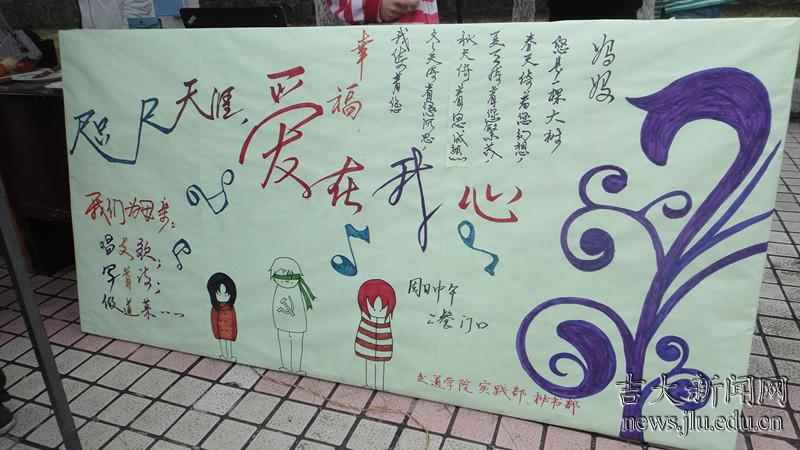 5月13日母亲节当天吉林大学交通学院的同学在南岭校区明园餐厅门前举办了以“咫尺天涯,爱在我心”为主题的母亲节活动。