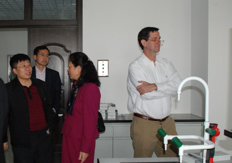 座谈会前,三位来访教授还参观了学院基础园的有机实验室、分析实验室以及无机实验室。