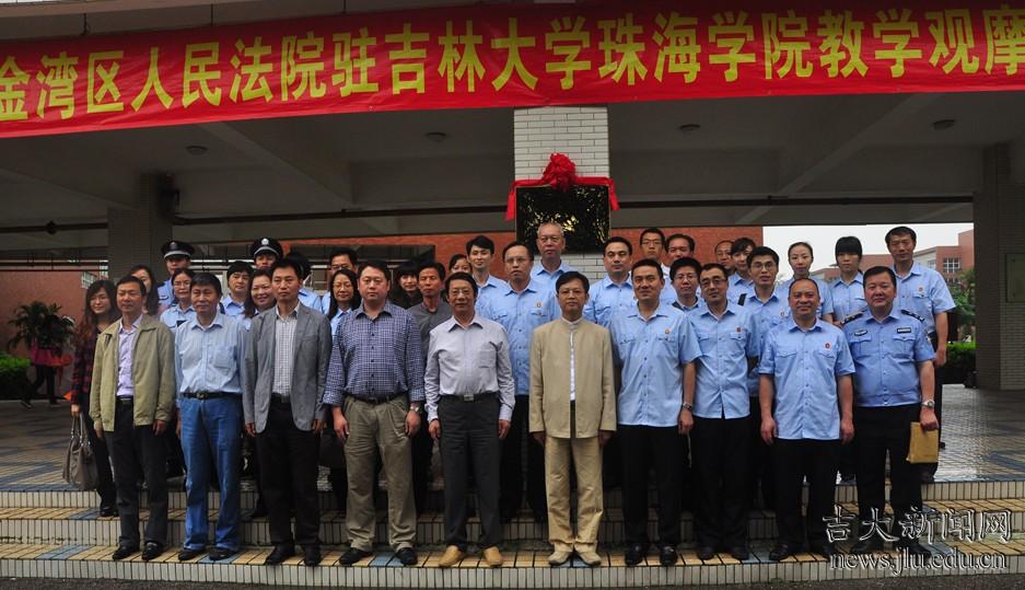4月20日,珠海市金湾区人民法院驻吉林大学珠海学院教学观摩法庭举行揭牌仪式,此后,珠海学院师生可以在校旁听真实的法庭审案并从中得到学习和教育。