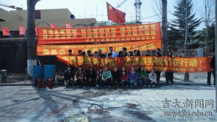 为了培养行政学子关爱他人、关心社会的责任感。行政学院2011级政治学一班全体同学于4月14日上午到长春公交巴士公司行车五队进行防火培训与演练,并在公交上进行防火知识宣传。