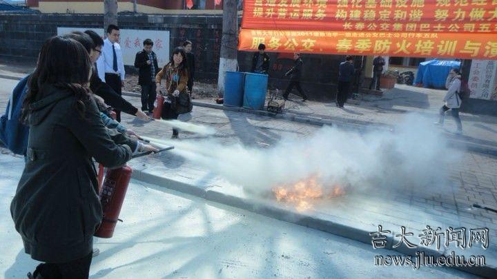 行政学院学子到长春公交巴士公司行车五队进行防火培训与演习