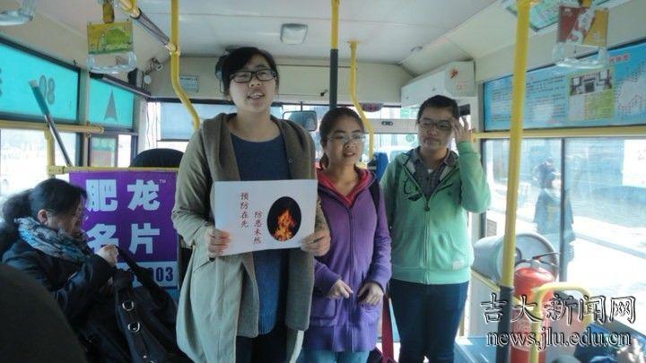 培训与演练完毕,同学分成四队分别登上公交车,向乘客普及防火知识和讲解火场逃生的技巧,车上乘客对他们热情细致的讲解表示了充分的肯定。(行政学院)