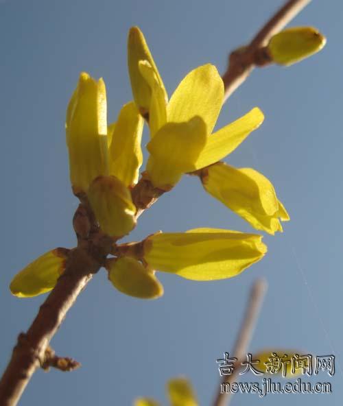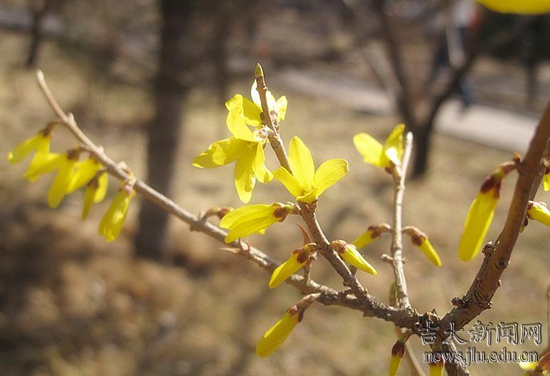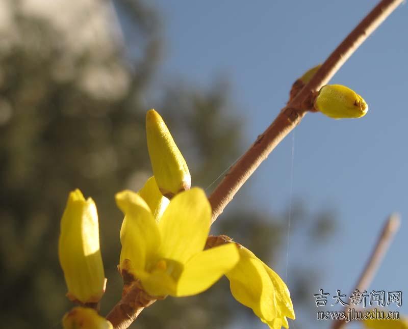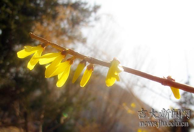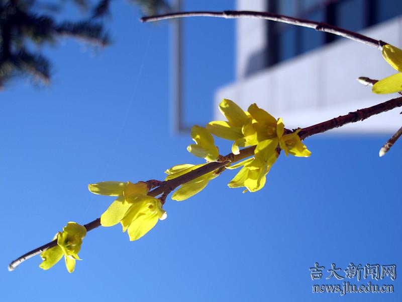 高楼晓见一花开,便觉春光四面来。暖日晴云知次第,东风不用更相催……今晨,吉大校园黄花翠蔓,春迟不掩娇颜。