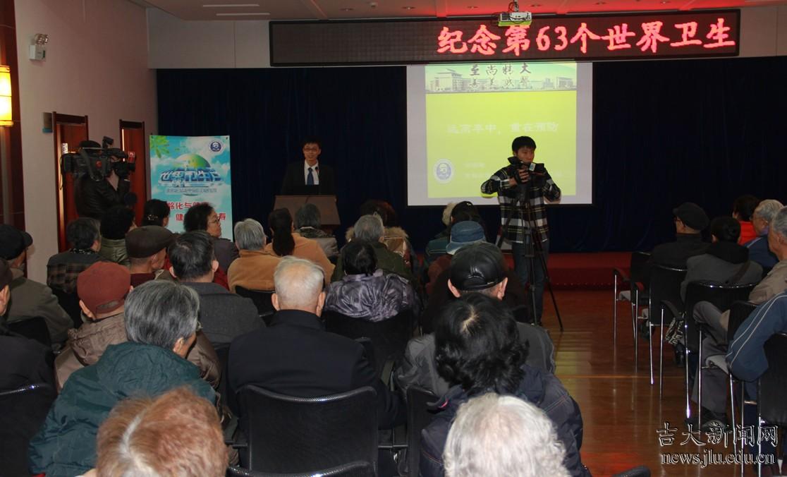4月7日是第63个世界卫生日,今年世界卫生日的主题是“老龄化与健康:健康有益长寿”,由吉林省生命关怀协会、吉林大学白求恩第一医院、长春市朝阳区桂林街道同光路东社区共同举办了纪念第63个世界卫生日健康宣教及义诊活动。第一医院神经内科爱心专家石明超为前来听课的上百余群众作了题为“远离卒中,重在预防”的知识讲座,石明超用通俗易懂的语言,生动地讲解了脑卒中病的产生原因、预防措施等内容。