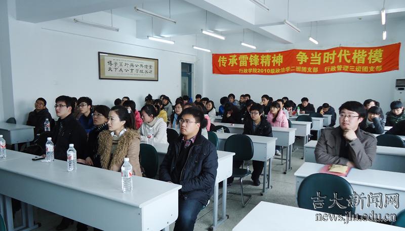 为弘扬和传承雷锋精神,3月10日,吉林大学行政学院2010级政治学二班团支部、行政管理三班团支部联和星光特殊儿童养护中心举办了以“传承时代精神,争当时代楷模”主题座谈会。主讲人为“长春市十大感人教师”“吉林省十佳母亲”星光儿童特殊养护中心院长王淑娟。