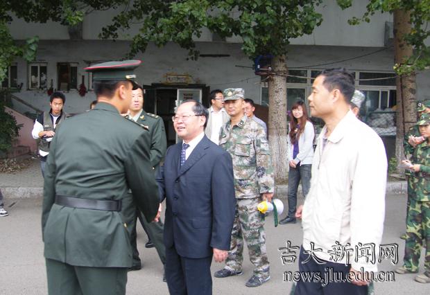 9月14日,学生军训已进入第3周,也是最关键、最疲劳、最艰苦的阶段。校党委书记陈德文在相关部门负责人陪同下先后到南岭、南湖和中心校区视察军训工作,慰问了帮训教官,看望了军训学生,使全校万余名新生受到极大鼓舞。