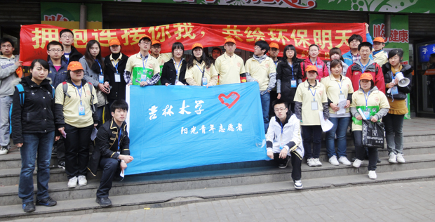 4月17日,来自吉林大学中心校区、南岭校区、南湖校区的100多名志愿者参加了低碳环保接力行动。
