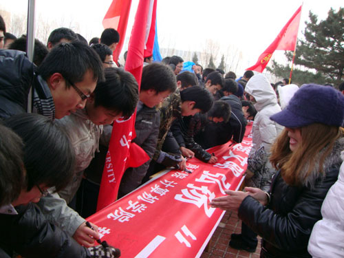 传递团旗后的签名活动现场(董婧怡摄)