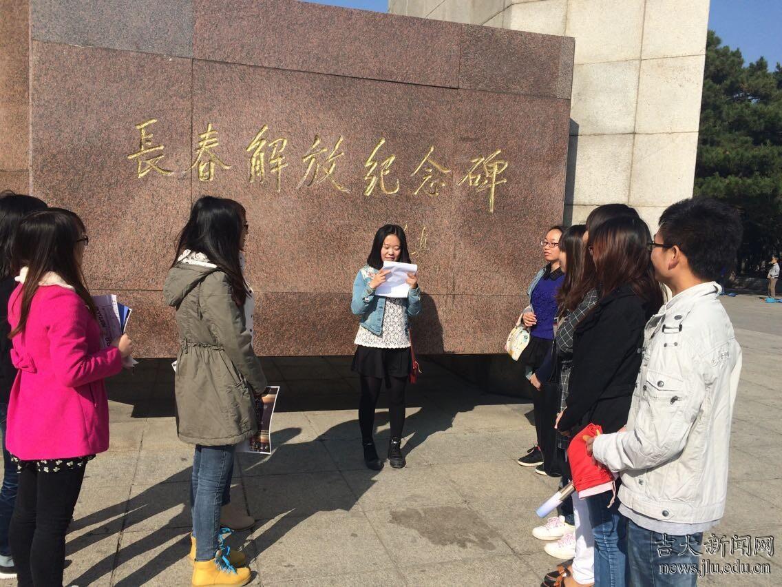 活动开始,同学们在南湖公园内的长春解放纪念碑前回忆了长春解放的故事,缅怀了革命烈士的英勇事迹。随后,同学们在南湖一角开展了“读书汇”环节。最后以徒步整个南湖公园作为此次主题活动的结尾,向周围的人们传播“以步行出行,享健康生活”的理念。活动中,同学们感受到了中国传统的革命精神,了解到了美好生活的来之不易,并在此精神的激励下,坚定了严格要求自己、努力学习、传递正能量的决心。