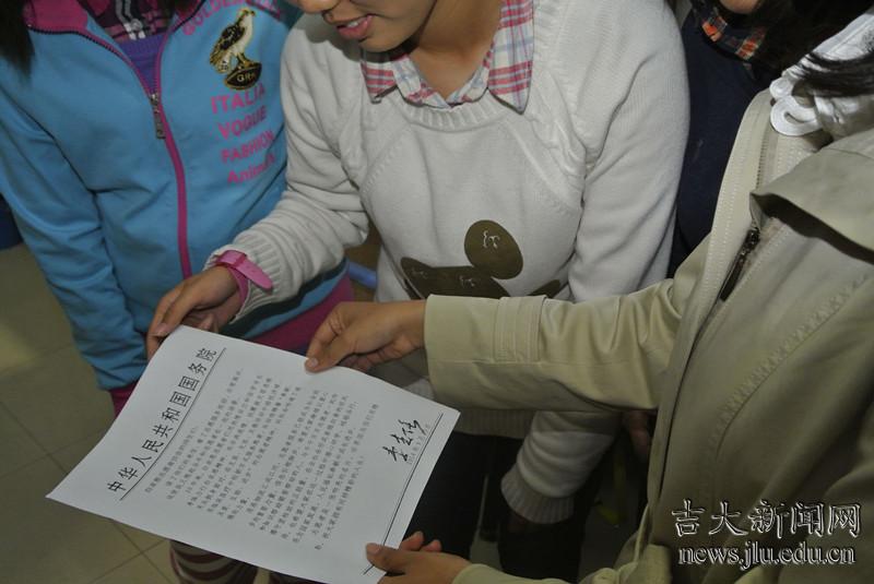 而在吉林大学方面,为了配合理解专访小组带回来的在团中央学习的内容,更好地贴近中央,理解中央精神,公共外交学院女生仔细阅读学习了李克强总理回复白求恩志愿者协会的信。李克强总理在信中高度赞扬了吉林大学学生的志愿服务精神,这给了同学们极大的激励。在阅读了总理的回信后,同学们参加志愿工作的热情十分高涨,纷纷表示要在大学期间多多参加志愿者活动。