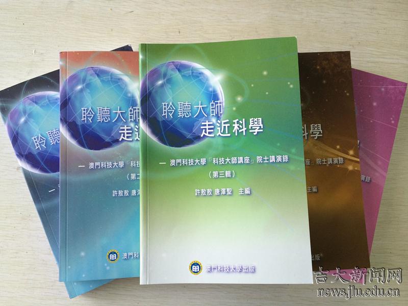 《聆听大师 走近科学——澳门科技大学“科技大师讲座”院士讲演录》系列图书(共五辑)中涵盖“天文与物理”、“地质与地理”、“生物与化学”、“资讯与工程”、“医疗与健康”、“社会与人文”、“科学与视野”等几个部分,是澳门科技大学“科技大师讲座”的文字内容,该系列图书由澳门基金会正式立项,由大学校监顾问许敖敖、大学学术顾问唐泽圣主持。许敖敖先生还是吉林大学珠海学院董事会的董事。