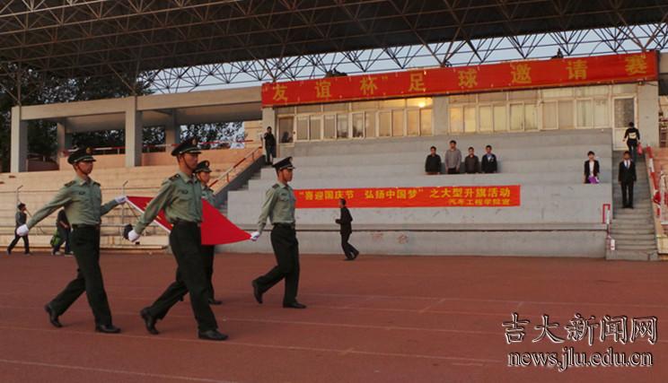 天高秋风凉,雄雄壮志情。日影朦胧中,吉林大学汽车工程学院莘莘学子汇聚南岭校区足球场,以飒爽的风姿举办“喜迎国庆节,弘扬中国梦”之大型升旗仪式,为祖国的六十四周年华诞献上祝福。