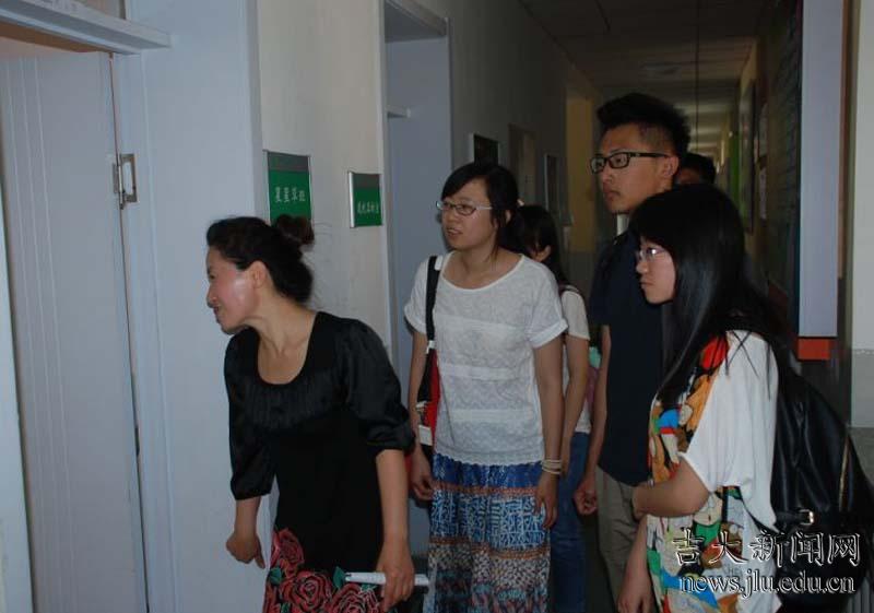 特殊教育学校的李老师还带着文学院的同学们熟悉了学校的教室和不同班级的孩子们。她介绍说,这些孩子都是天才,上天是公平的,失去了某种能力,却给予他们常人无法比拟的天赋,比如数学思维、模仿能力、艺术直觉等,他们渴望与人沟通,希望吉大的同学们经常过来,用阳光的心态和健康的活力去感染这些孩子们。
