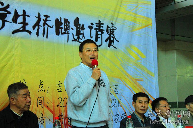 吉林大学副校长兼研究生院院长陈岗出席开幕式、致辞并参与比赛。比赛中,陈岗还与吉大农学部永和桥牌协会的同学们分析牌局、切磋技艺、交流心得。