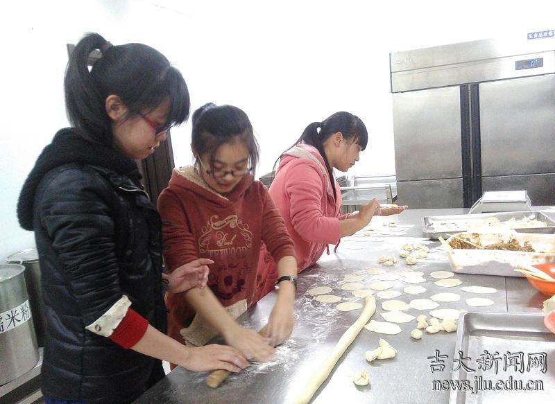 “没问题。”餐厅的刘副理不仅热情地服务同学们,还在一旁关切的提醒到,“同学们饺子馅儿不能包的太满哦,容易煮破,要适量。”