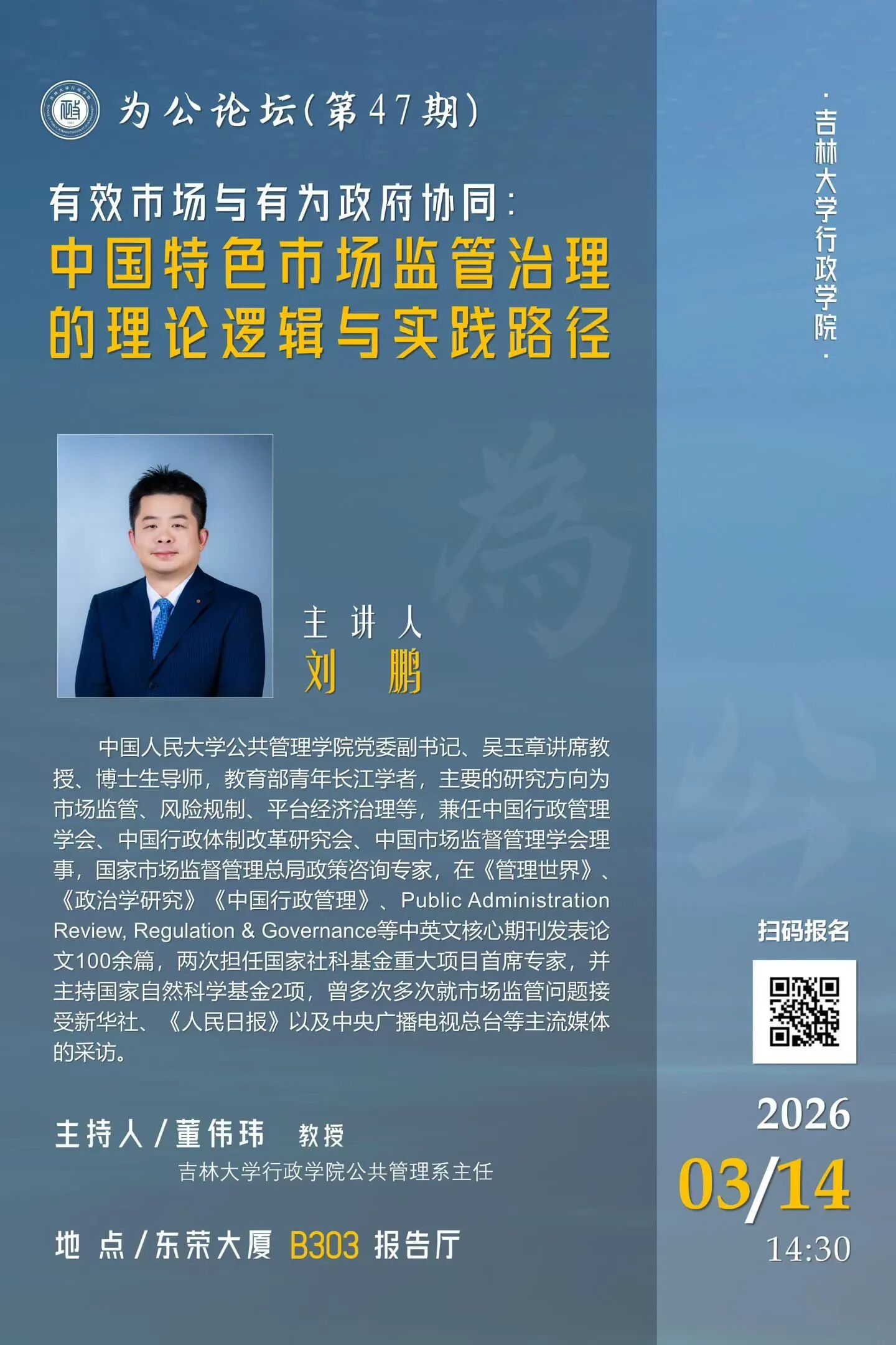 讲座题目:有效市场与有为政府协同:中国特色市场监管治理的理论逻辑与实践路径