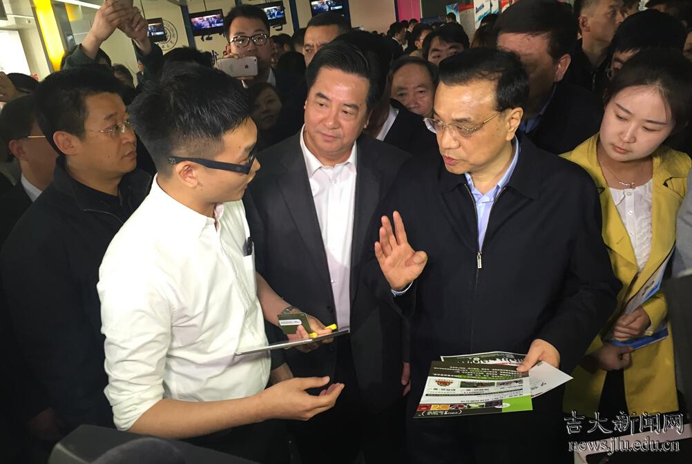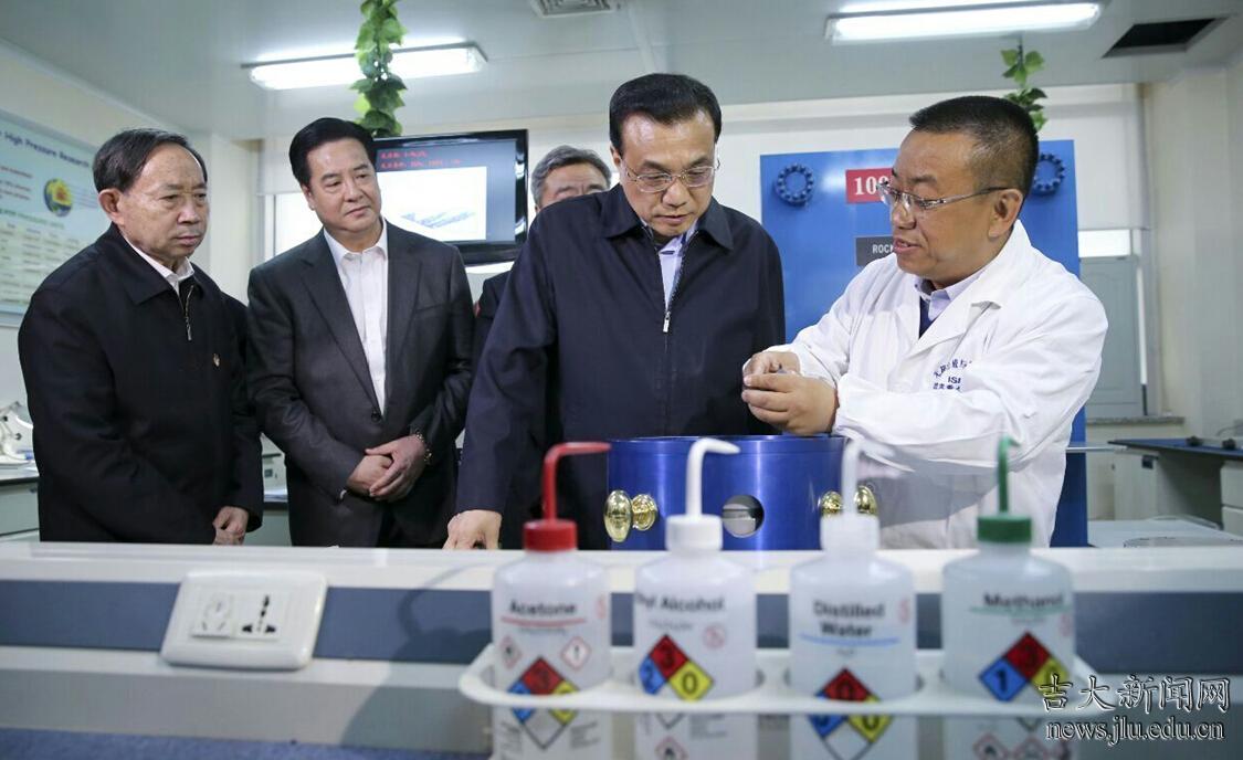4月10日下午,中共中央政治局常委、国务院总理李克强在吉林省委书记巴音朝鲁和教育部部长袁贵仁等国家部委有关负责人的陪同下,乘车来到吉林大学中心校区,视察了化学国家重点实验室和学生就业创业指导与服务中心。