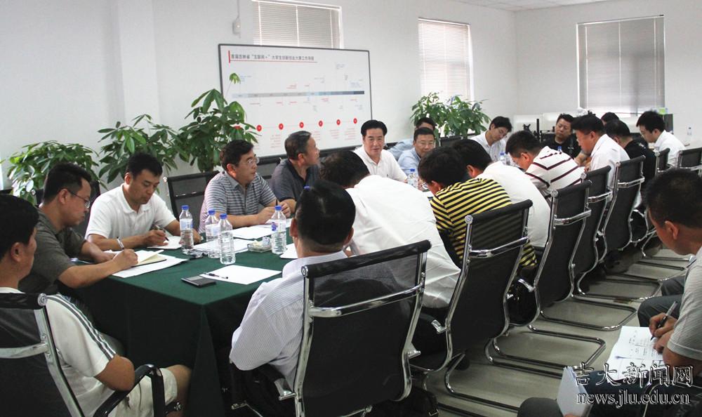 8月14日,吉林大学召开首届中国“互联网+”大学生创新创业大赛第29次筹备工作会议。校长李元元、校党委副书记兼副校长韩晓峰、副校长张向东、副校长陈岗以及教务处、校团委等大赛筹备委员会工作组成员单位负责人和筹备工作办公室负责人参加会议。会议由韩晓峰主持。