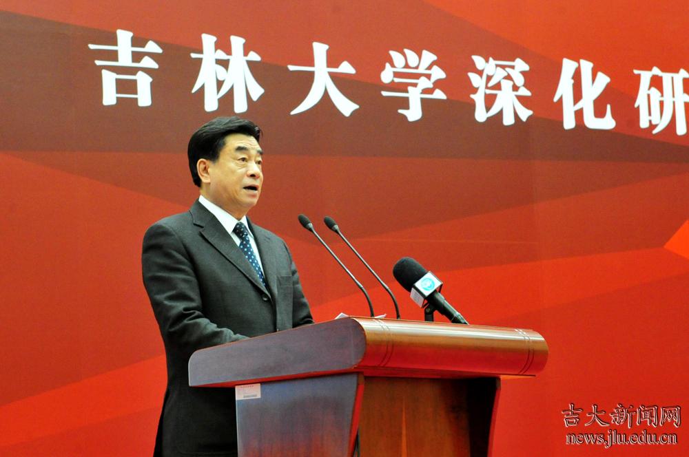 校长李元元以“把握机遇,深化改革,开创我校研究生教育工作新局面”为题,全面回顾了吉林大学研究生教育工作取得的成绩,强调了深化研究生教育改革的重要意义,明确了吉林大学研究生教育改革的主要内容,并为进一步深化研究生教育改革提出了具体要求。他说,吉林大学研究生教育经过30年的建设与发展,已经进入了一个快速发展的轨道,取得了令人瞩目的成绩。目前,建立起了较为齐全的研究生学位授权体系和人才分类培养体系;基本形成了涵盖培养全过程的研究生教育质量保证体系;研究生教育的国际化取得重要进展;科学道德与学风建设工作取得显著成效;已经形成了比较完备的研究生思想政治教育工作体系。李元元强调,吉林大学研究生教育改革需要解决好生源质量和招生制度改革、研究生培养模式改革、研究生导师队伍建设、研究生教育国际化、健全研究生质量保证体系等五个方面的问题。为深化研究生教育改革工作,李元元提出了四点要求:一是要高度重视,切实做好研究生教育改革工作,学校各级领导要充分认识和深刻领会深化研究生教育改革的重要意义,各部门、各研究生培养单位要把其作为“一把手工程”来抓;二是各研究生培养单位要充分发挥主体作用,努力提高培养质量,通过改革充分发挥办学主体和导师的能动作用,放开手脚搞好本单位的研究生教育工作;三是研究生导师要充分发挥第一责任人的作用,切实做好研究生培养工作;四是各部门要通力配合,全方位做好保障工作,全校各部门、各研究生培养单位要通力合作,全方位参与,通过深化研究生教育改革,努力构建具有吉大特色的高层次拔尖创新人才培养体系,在学科规划、招生选拔、教学服务、科技支撑、国际交流、奖助激励、就业指导、社会评价、宣传报道、后勤保障等各个方面形成一套行之有效、有利于提高研究生培养质量的改革举措、管理办法和规章制度。