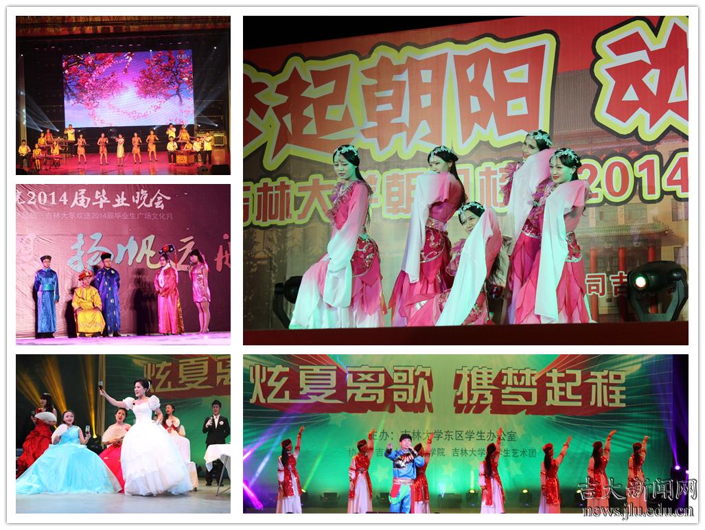 结合吉林大学校区多而分散、师生人数多、学科特点不同等因素,系列大型专场晚会分布于不同校区,主题鲜明,内容新颖。学校于6月10日开始在中心校区开始的“情系吉大•追梦启航”广场文化月;6月13日朝阳校区“梦起朝阳,动感之夜”;6月16日,南岭校区的“炫夏离歌,携梦起程”;6月17日,和平校区的“此间邂逅,岁月无双”;6月18日,新民校区的“依医不舍”……歌声清越嘹亮、舞姿翩跹唯美、曲艺曼妙生辉、情景剧新颖独特、诗朗诵扣人心弦、乐器表演引人入胜……