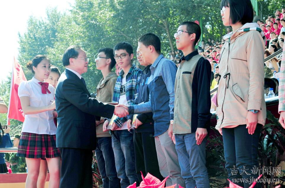 开学典礼上,副校长兼研究生院院长陈岗宣读了“吉林大学关于颁发2014级优秀新生入学奖学金的决定”。校党委书记陈德文为优秀新生入学奖学金获得者代表颁奖。