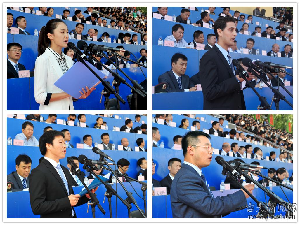 2014级经济学院本科生李秭慧代表全体新生在发言中表达了成为吉大一员的骄傲和荣耀,对初入吉大感受到的温暖关怀表示感谢,并号召全体新生以青春作证,仰望星空,脚踏实地,博学笃行、奋发图强。