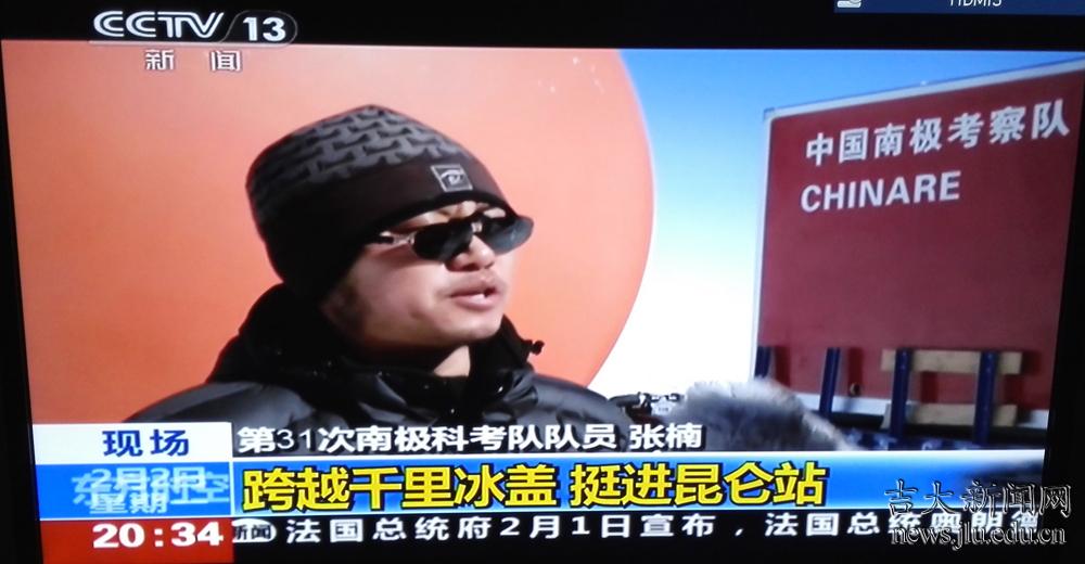 2月2日晚中央电视台《东方时空》栏目报道了第31次南极科考队抵达南极昆仑站的消息,报道中,吉林大学南极科考队员张楠接受了记者的采访,讲述了此次南极之旅的经历和感受。