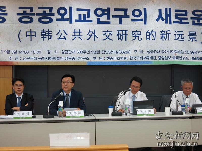 9月3日,由成均馆大学成均中国研究所和吉林大学公共外交学院共同主办的首届中韩公共外交研究论坛——“中韩公共外交研究的新远景”在首尔举行。吉林大学校长助理、公共外交学院院长刘德斌应邀出席会议并在开幕式上致辞。韩国外交部、统一研究院,韩国国立外交院、汉阳大学、西江大学、亚洲大学、建国大学以及中国复旦大学、南京大学等中韩高校代表以及中央日报、韩国放送(KBS)等媒体共计60余人出席了会议。