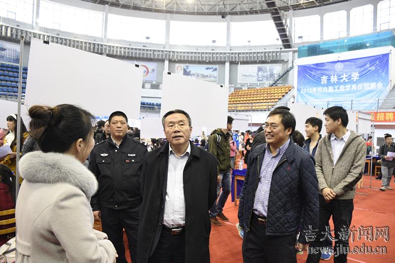 吉林大学党委副书记兼副校长韩晓峰来到招聘会现场,详细询问了用人单位的用工需求、用工时间等,并鼓励前来求职的学生借此机会,努力提高自身综合素质与实践能力。