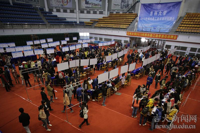 3月25日,吉林大学举行2015年校内勤工助学岗位招聘会,70多家中心校区用工单位提供勤工助学岗位1000余个,全部面向家庭经济困难学生,共吸引2600多名学生参与。