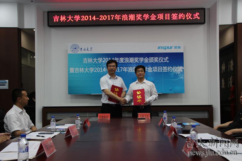 颁奖仪式后,吉林大学、浪潮集团双方代表共同签署“2014-2017浪潮奖学金项目协议”。自2009年浪潮集团在吉林大学设立奖学金以来,已与学校建立了密切的产学研合作关系,此次奖学金协议续签,标志着浪潮集团与吉林大学的合作将会开启新的篇章。