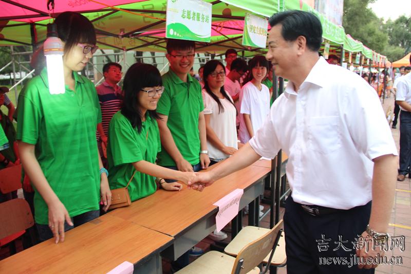 8月29—31日,吉大校园内彩旗飘舞,人声鼎沸,处处洋溢着喜庆的气氛,学校将在这几天迎来万余名2014级的新同学。29日、30日,校党委书记陈德文、校长李元元分别率队来到各校区迎新现场、新生宿舍,看望2014级新生及家长,慰问参加迎新工作的教职工和学生志愿者。针对吉大的迎新工作,不少新生家长感叹“吉大就像家一样”。